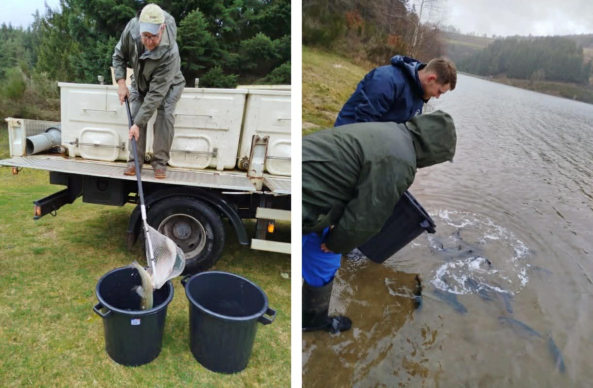 - parce que vous aiderez l’association La Truite du Plateau, qui a œuvré et œuvrera à maintenir et améliorer les capacités halieutiques des rivières de son territoire (création d’abris, élagage, déplacement des parcours « sans tuer« ), une association qui a su et sait accueillir tout adepte (lâchers sur le lac, école de pêche, tripes-troc d’ouverture…)